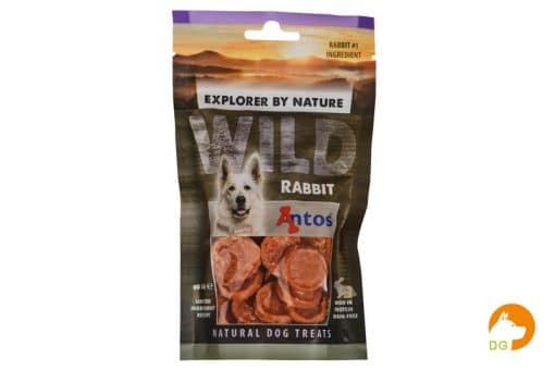 De Antos WILD Konijn is een lekkere 100% natuurlijke hondensnack. Deze snack is glutenvrij, suikervrij, graanvrij en zit boordevol proteïnen. Naast dat deze snack een verantwoord tussendoortje is, kan hij ook gebruikt worden als trainingssnoepje. Met onze smakelijke hoogwaardige hondensnacks kunt u uw huisdier elke dag met een gerust hart verwennen. Dit omdat ze zijn gemaakt uit zuivere, gezonde ingrediënten die zorgvuldig zijn geselecteerd op basis van kwaliteit en voedingswaarde. Uw hond is er gek op.